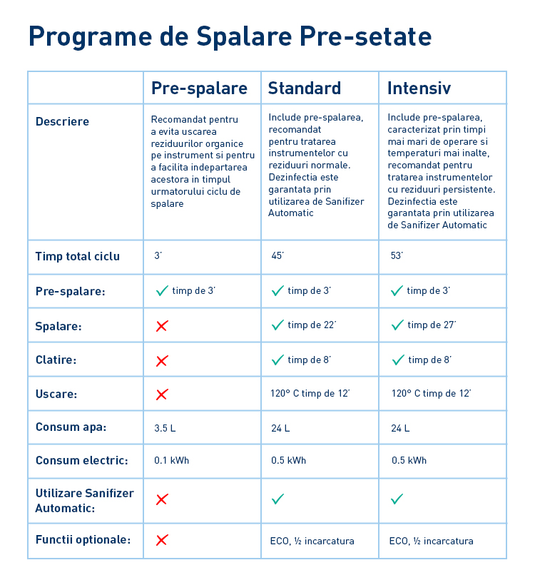 Programe de spalare pre-setate: