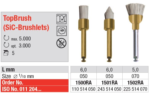3 forme de perii pentru prepararea tuturor ocluzale si suprafetele proximale